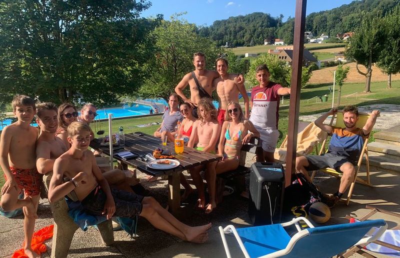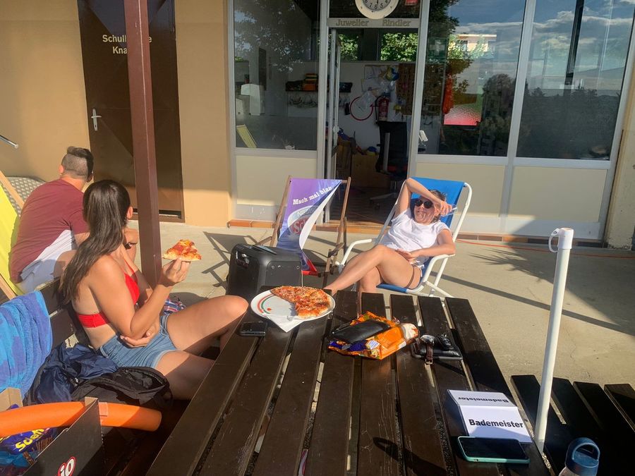 Am letzen Tag im Juli 2022 beschlossen wir uns einen gemütlichen Sonntagnachmittag im Freibad Gnas zu machen. Es wurde nicht nur im Bad abgekühlt, sondern in entspannter Atmosphäre getratscht, Spikeball gespielt und schließlich auch das Finale der Damen-Fußball-EM  angeschaut. Das Wetter spielte perfekt mit und wir freuten uns über viele Mitglieder der KJ, die vorbeischauten. Mit dabei war auch unser Lieblingsbademeister "Hasi".