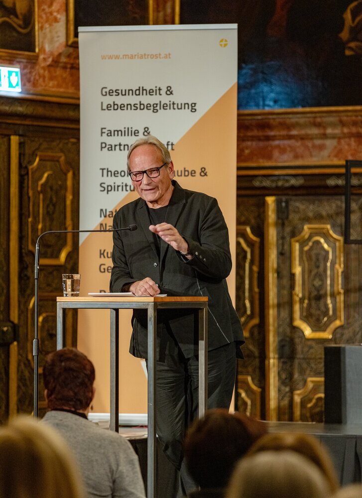 Letztere entstehe, wenn wir in Resonanz treten mit den uns umgebenden Menschen, betonte Mettnitzer in Anlehnung an den bekannten Soziologen Hartmut Rosa, unsere Masken fallen lassen und „artikulieren, was uns weh tut“. In dieser Ehrlichkeit, und schöpfend aus der „Hausapotheke des Lebens“, der Dankbarkeit, seien wir in der Lage, ein Lächeln hervorzuzaubern und für andere da zu sein. Dieser Ausdruck der Liebe wirke sich auf uns selbst aus, denn „diejenigen, denen wir eine Stütze sind, geben uns Halt“, wie es Marie von Ebner-Eschenbach auf den Punkt bringe. Und: Wenn wir daran gehindert werden, „unseren inneren Zauberberg“ zu erklimmen und freudvolle Verbundenheit zu leben, sei es hilfreich, sich vor Augen zu führen, „dass niemand uns davon abhalten kann, gute Gedanken zu denken“, so Mettnitzer in seinem Schlussstatement.