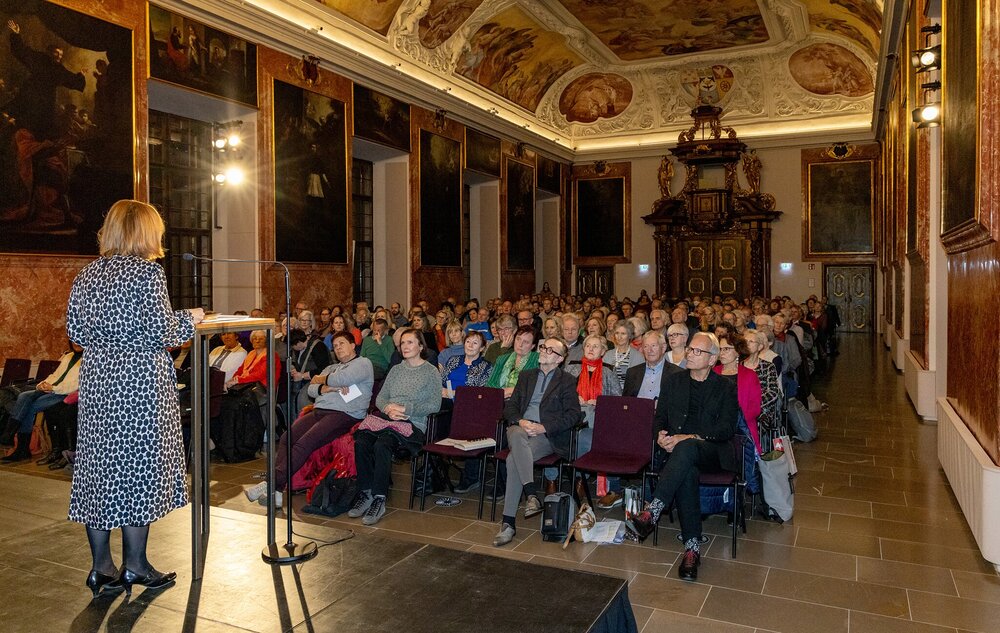 In ihren Begrüßungsworten stellte Kathrin Karloff, Leiterin des Bildungsforums Mariatrost, das hierfür notwendige und von Rainer Marie Rilke geforderte „Gefühl des Anfangs“ in den Mittelpunkt, das von der möglichen „Veränderung unserer Welt aus dem Herzen“ ausgehe. Die Frage sei, welche Auswirkungen die individuelle Veränderung auf „das große Ganze habe“, wie es beispielsweise Thomas Mann in seinem Roman ‚Der Zauberberg‘ (veröffentlicht vor genau hundert Jahren, im November 1924!) mit dem Traum vom Erschaffen einer neuen Welt der Versöhnung ausdrückte.