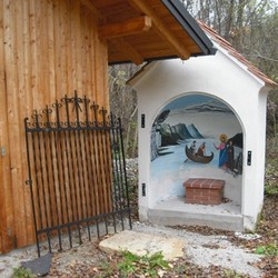 Im Sommer 2017 wurde das Gemälde in der Apsis des Bildstocks mit einer schönen Hintergrundmalerei vervollständigt und ein schmiedeeisernes Gitter mit einer schwarzen Lackierung originalgetreu nach dem Tor des neu errichteten Marien-Bildstock auf dem Murkraftwerksgelände angefertigt.