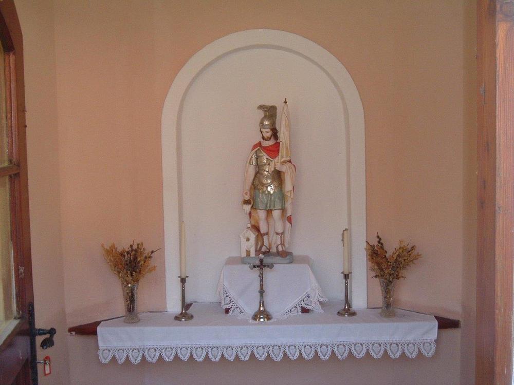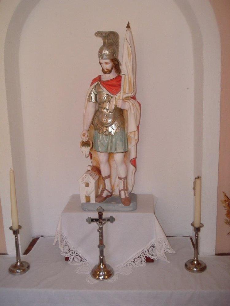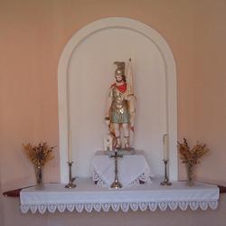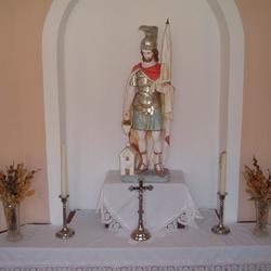 Herzstück der Kapelle ist in der Mitte eine herrliche Statue des heiligen Florian auf einem Altarbrett. Florian, der zu Beginn des 4. Jahrhunderts wegen seines Glaubens in die Enns gestürzt wurde, ist der Schutzheilige von Oberösterreich und der Patron gegen die Feuersgefahr, somit auch der Schutzherr aller Feuerwehren. Flankiert wird seine Statue von einem metallenen Kruzifix, zwei Kerzenständern und zwei gesegneten Palmbüschen. Letztere erinnern daran, dass seit der Auferstehung Jesu das Leben stärker ist als der Tod und die Liebe mehr Kraft hat als das Böse.