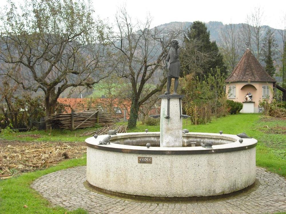 Edwin Eder war es auch, der aus Anlass des Jubiläums „25 Jahre Franziskaner in Frohnleiten“ unweit seines ersten Ateliers den Franziskusbrunnen geschaffen hat, der am 4. Oktober 1992 feierlich eingeweiht wurde. Eine Ausstellung im Gartenpavillon dokumentierte damals die Entstehung dieses einzigartigen Brunnens von der ersten Skizze bis zu den Gussformen.