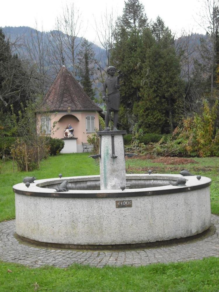 Der Franziskusbrunnen ist ein Kunstwerk unserer Zeit und dem Andenken des heiligen Franz von Assisi gewidmet. Der in der Zwischenzeit berühmt gewordene Akademische Maler Edwin Eder hat sich mit großem Engagement mehr als ein Jahr mit diesem Werk beschäftigt. So entstand eine Bronzeplastik eines jugendlich-revolutionär anmutenden Franziskus im Gespräch mit einem Vogel. Die Vogelpredigt ist eine bekannte Erzählung aus dem Leben des Heiligen, der bekanntlich ein großer Natur- und Tierfreund war. Unter den fünf am Brunnenrand postierten Tieren befindet sich auch ein durch Ölschlamm verendeter Schwimmvogel. Fünf kleine Weltkugeln, die das Tier-Pentagon am Brunnenrand unterteilen, zeigen auf jedem der fünf Kontinente einen Krater. Wunden, aus denen die Welt blutet. So entstand eine der wichtigsten plastischen Arbeiten des heimischen Künstlers.
