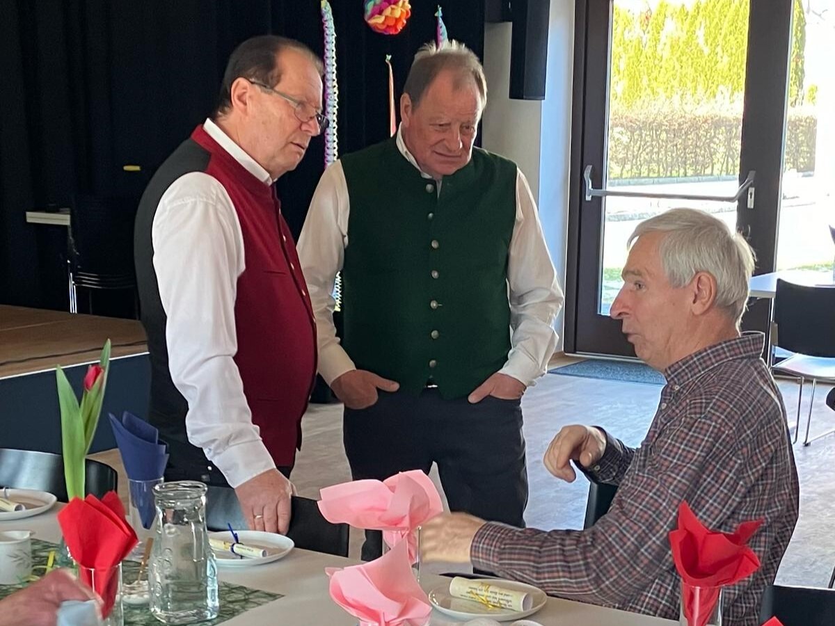Der Höhepunkt des Nachmittags waren Mori Hans und Tschernko Karl. Die zwei Musikanten unterhielten die Feiernden mit ihrer Musik und Witz­ein­la­gen köstlich. Bei Krapfen, Strauben, Kaffee und Wein wurde viel geplaudert, gesungen und gelacht.